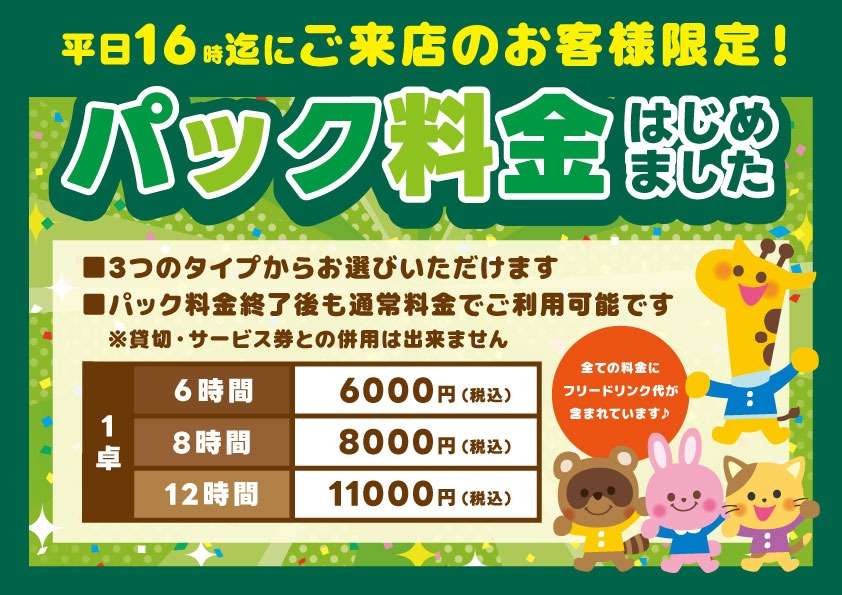 パック料金始めました。